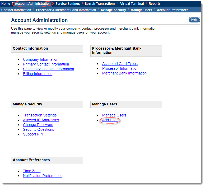 - Click Account Administration.