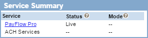 - Verify under Service Summary, your account has PayFlow Pro status of Live. If not, contact PayPal to have this feature enabled on your account.