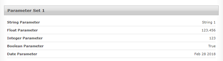 - A custom parameter set is defined, containing any number of custom parameters.
