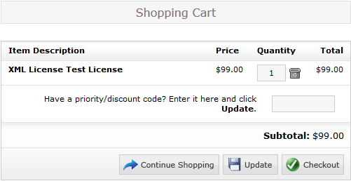 At checkout, anonymous/new customers will register their contact information to make a purchase using the shopping cart. Existing customers can log in to make another purchase, and use the Customer License Portal to purchase renewals and upgrades based on the licenses/products they already have.
