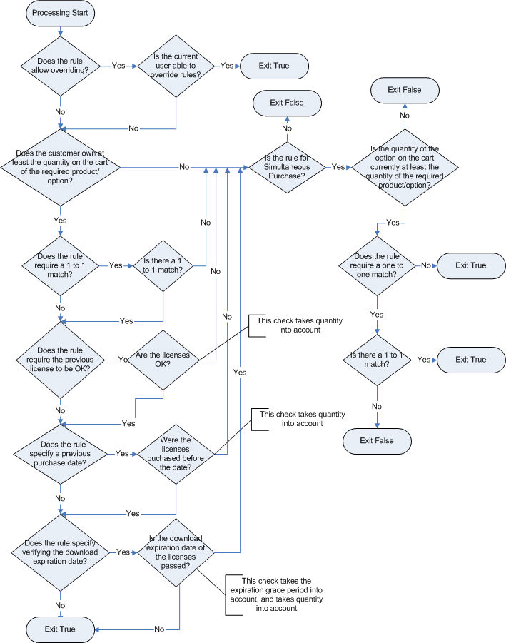 The following flowchart explains the processing for all rules defined on a Product Option: